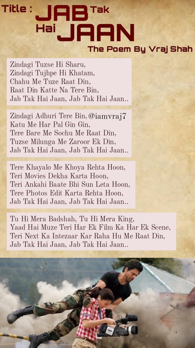 Jab Tak Hai Jaan Poem / Your memory life jab tak hai jaan. Jab Tak Hai Jaan Poem - Jab tak hai jaan starring: