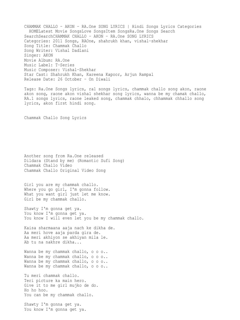 Chammak Challo Akon Ra One Song Lyrics Hindi Songs Lyrics Bollywood Film Production Districts - Translation to 'aradhike lyrics' a malayalam song aka 'aaraadhike' from 'ambili film' of soubin shahir.